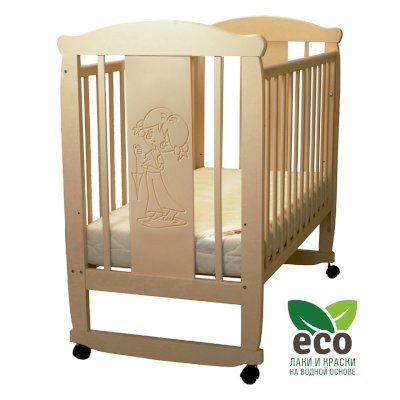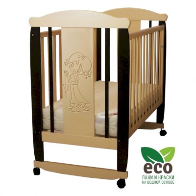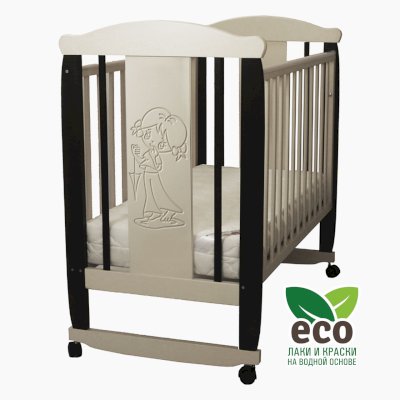 Кроватка декорирована фрезерным рисунком "Девочка". Уникальные фрезерные рисунки размером от 50 см на обеих спинках.