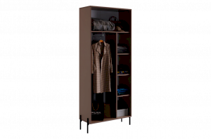 Шкаф "Доминика" оснащен глухими фасадами, скрывающими за собой просторное внутреннее пространство. На одной стороне шкафа находится штанга для одежды, обеспечивая удобное место для хранения одежды на вешалках.