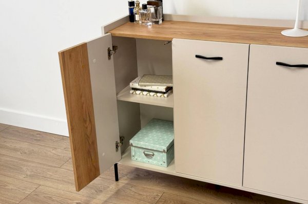 Комод "Доминика"  – это идеальное сочетание эстетики и функциональности. Этот комод, широкий и вместительный, предлагает обширное пространство для хранения ваших вещей, при этом украшая ваш интерьер своим стильным дизайном.