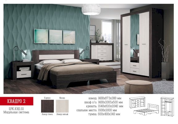 Модульная спальня Квадро-2 (Астрид-Мебель) – товар доступен к покупке в интернет-магазине muromskiy-dommebeli.ru. Цена – 44 914 руб. без учета доставки. Стоимость дополнительных услуг и сроки получения мебели уточняйте у менеджера. Возможен безналичный расчет, оплата по карте на сайте.