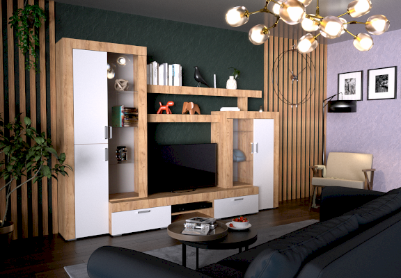 Модульная гостиная Оризона New Дуб крафт/Белый глянец (PDM)